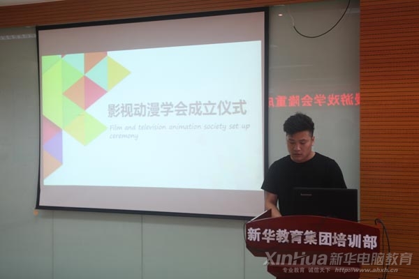 2016年6月22日在學院開啟影視動漫學會成立儀式。安徽新華專修學院教務處主任張凱星、互聯網學院副主任李兵、藝術學院副主任朱葉偉、網絡工程學科負責人邵春林以及影視動漫游戲學科負責人王莉參會。
