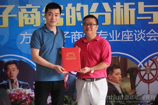 安徽新華電腦專修學(xué)院帶來了好消息:院長吳元紅為方劍老師頒發(fā)聘書,聘請方劍老師為新華互聯(lián)網(wǎng)科技電子商務(wù)方向特聘講師!