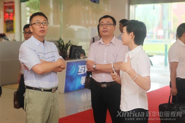 安徽新華電腦專修學院考察指導,在新華教育集團副總經理高肇冬、院長吳元紅以及其他部門領導和相關部門負責人的陪同下,實地走訪參觀了學院咨詢接待中心、影視動漫、電子商務等創業實訓基地。針對學院近年來的發展、建設、規劃、品質等方面進行了調研交流。