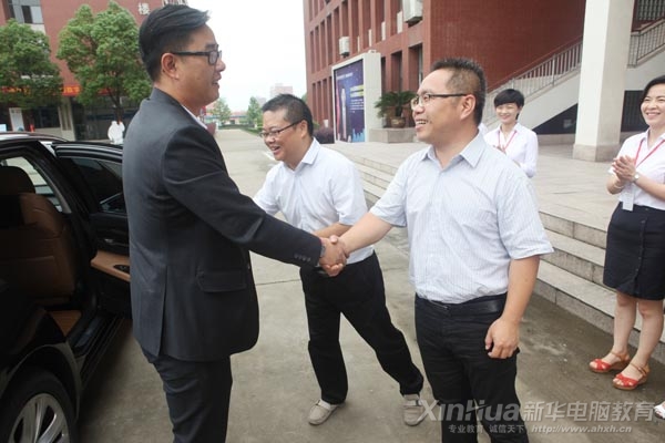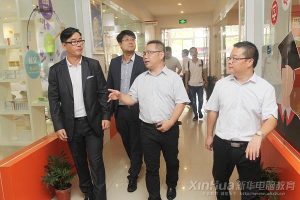 安徽新華電腦專修學(xué)院參觀訪問。新華教育集團(tuán)總裁張明、新華集團(tuán)副總裁王孝武、