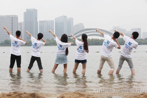 天鵝湖沙灘前合影留念
