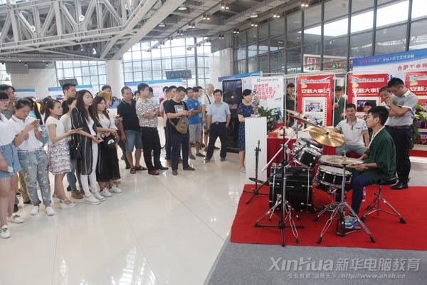 安徽新華電腦專修學院藝術(shù)系同學的架子鼓表演為整個“世界青年技能日”活動拉開序幕。全場焦點瞬間被吸引,伴隨著鼓點的節(jié)奏聲,現(xiàn)場的觀眾也逐漸“燃”起來。