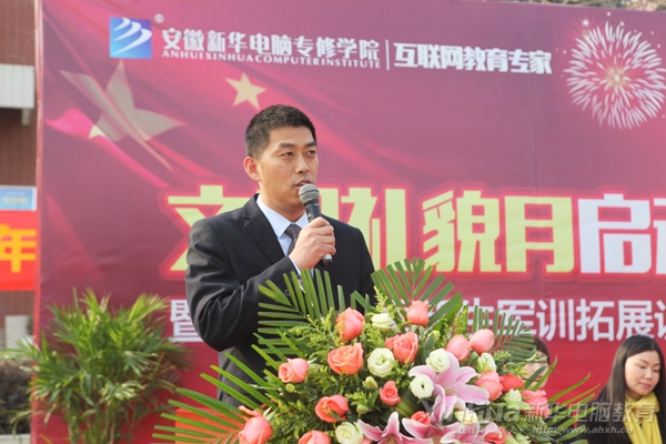大會第一項奏國歌,全體人員全體起立,肅然起敬。緊接著,安徽新華電腦專修學院院長助理孫立民在主席臺作軍訓動員講話。看著臺下一個個充滿青春氣息的學生們,院長助理孫立民不由感慨:今天我們齊聚在這里,拉開了2017年春季新生軍訓活動的序幕,軍訓生活的開始,也代表著你們在安徽新華電腦專修學院校園生活的開始。這里將有同學們難以忘懷的校園生活,這里將會為同學們種下一份愛,練就一份頂天立地的人格,幫助同學們劃出一條成功人生的軌跡。人生最重要的往往不是奮斗,而是選擇和方向。