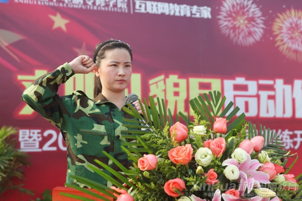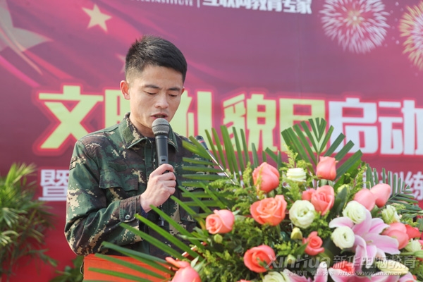 軍訓教官代表高偉上臺講話