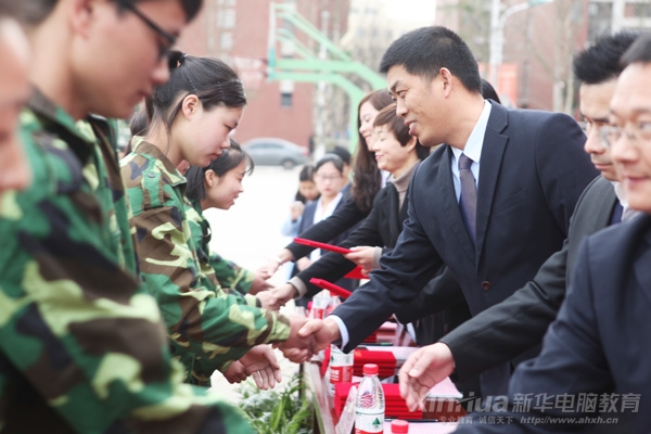 表彰環節后,安徽新華電腦專修學院院長助理孫立民在大會上致辭:“首先,我謹代表學院向全體新同學表示熱烈的歡迎!也向全體教官這段時間的努力表示衷心的感謝,更向圓滿完成軍訓任務,取得優異成績的同學們表示衷心的祝賀。”表示歡迎鼓勵的同時,孫助理也對新同學們提出了幾點希望,希望廣大新生們要明確目標、堅韌不拔、理性定位;要刻苦學習、勤奮實踐、苦練本領;要團結同學、強身健體、歷練心智;要面向社會、勇于實踐、接受挑戰。