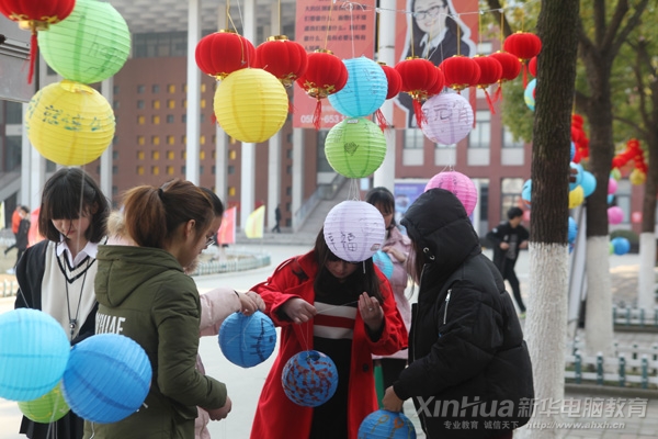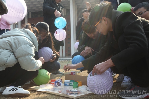 燈籠,一直是古代的吉祥物,尤其是在元宵佳節,都會有逛燈會、看花燈的習俗。可是在安徽新華電腦專修學院,大家可不是簡單的賞花燈,而是集體出動DIY自己的元宵彩燈!那些圓滾滾的燈籠,在學院師生們的筆下,一個個穿上了各式各樣美麗的新衣,仿佛被賦予了靈魂,爭著搶著要把光鮮亮麗的身姿展現出來,每一盞燈籠都傳遞著對新的一年生活圓滿,愿望成真的向往和追逐!