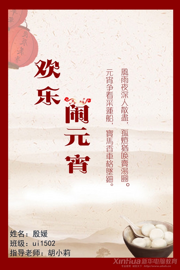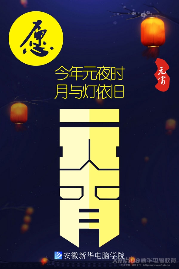 而安徽新華電腦專修學(xué)院作為互聯(lián)網(wǎng)教育專家,對于傳統(tǒng)元宵佳節(jié)自然也是不可錯過,除了燈籠DIY、元宵節(jié)猜燈謎等活動之外,我們學(xué)富五車的新媒體UI設(shè)計(jì)專業(yè)的同學(xué)們還傾心設(shè)計(jì)了豐富多彩的元宵節(jié)系列海報(bào),跟著小編來看看吧!