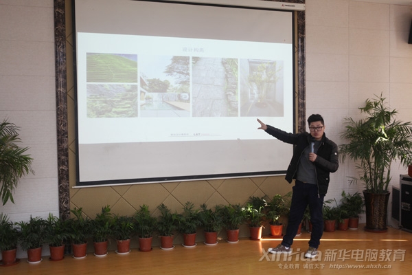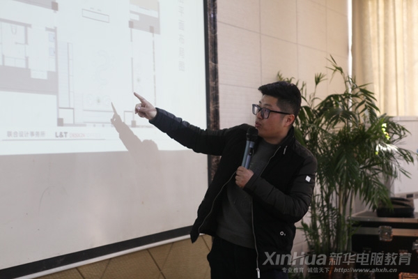 安徽新華電腦專修學(xué)院5號(hào)樓1樓多功能廳,迎來了一位重量級(jí)大牛導(dǎo)師——合肥華然裝飾設(shè)計(jì)公司設(shè)計(jì)總監(jiān)陶毅。中國建筑裝飾協(xié)會(huì)注冊(cè)二級(jí)建筑師、中國建筑裝飾協(xié)會(huì)全國住宅裝飾裝修行業(yè)優(yōu)秀設(shè)計(jì)師、中國室內(nèi)裝飾協(xié)會(huì)室內(nèi)設(shè)計(jì)師...坐擁多項(xiàng)資格認(rèn)證的陶總從事設(shè)計(jì)行業(yè)已有11年,極其擅長現(xiàn)代奢華、歐美英倫、美式鄉(xiāng)村、新中式等設(shè)計(jì)風(fēng)格,對(duì)設(shè)計(jì)和材料的整體把控力較強(qiáng),擅長軟裝配飾,重視細(xì)節(jié)。學(xué)院此次邀請(qǐng)?zhí)湛傋鳛閷I(yè)老師帶來了一場別具生面的題為《成為最潮的設(shè)計(jì)師》專題講座。