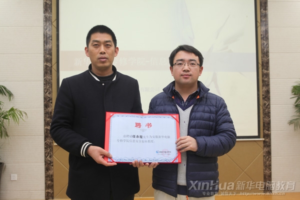 講座的最后,安徽新華電腦專修學(xué)院更是傾力為學(xué)院的學(xué)子們謀福利,聘請任永程老師為信息安全客座教授。相信同學(xué)們在任老師的引導(dǎo)下,能感悟出自己的學(xué)習(xí)生涯和人生旅程。