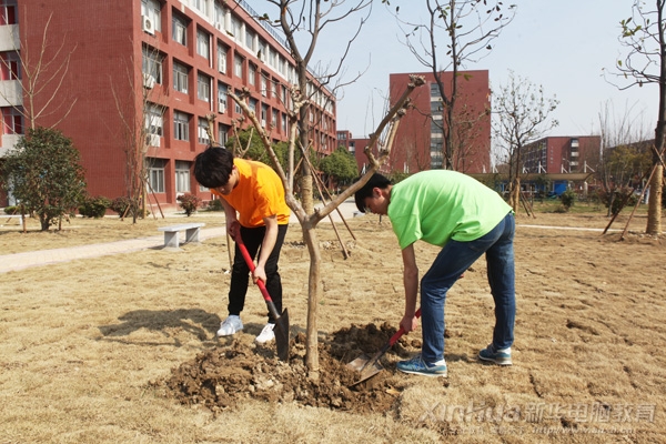 為了響應植樹節(jié),喚醒校園角落經歷嚴冬的一抹抹綠色。安徽新華電腦專修學院的同學們穿上了青春洋溢的校園文化衫,來到了校園的每個角落,用清新的樹苗向春天寄去了第一封問候信。同學們的鐵锨、水桶以及成捆成捆的各種樹苗,舞動在校園的各個角落,栽種下自己心底真實的希望與追求。