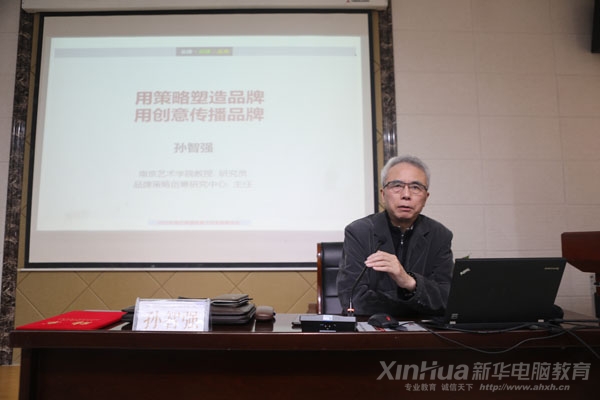 安徽新華電腦專修學院特邀南京藝術學院教授孫智強先生在學院五號樓一樓的學術報告廳,舉辦了關于“用策略塑造品牌,用創意傳播品牌”的學術講座。
