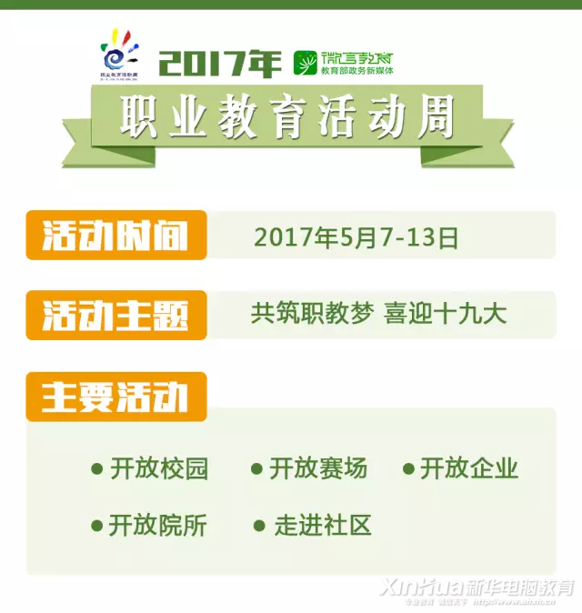 職業教育活動周具體詳情敬請關注:中華人民共和國教育部官方網站