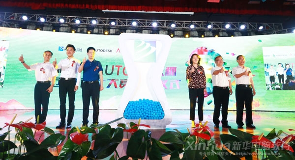 最后,在大賽的啟動視頻和背景音樂中,新華教育集團總裁張明、安徽省人社廳職業能力建設處處長劉曉燕、中國職業技術教育學會主任顧占春等領導嘉賓上臺,宣布新華•Autodesk杯創意設計大賽正式啟動!