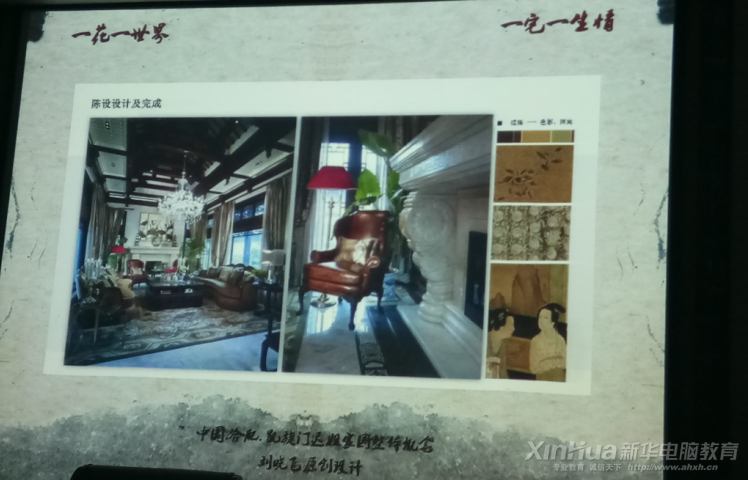 18點10分,講座正式開始,劉老師用傳統和時尚兩種色彩風格告訴在場同學們一個真理:色彩是室內靈感的來源。劉老師用自己的一些案例和同學們解析了他如何和客戶交流,將自己的一些想法融入到設計中。詳細的介紹了一個好的設計師怎么做出來的,不僅僅是會用軟件,更重要的是根據客戶的喜好,裝修的風格,加入一些文化、內涵的設計元素。之后,劉曉飛老師用一個室內設計施工的完整流程向同學們展示了的室內設計的要點和魅力所在。