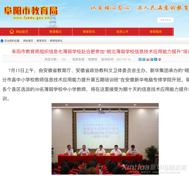 安徽電視臺和阜陽市教育局在報道中,強調了培訓班主辦方政協教科文衛體委員會、省教育廳情系基層的關懷之心,盛贊了新華教育集團的扎根教育的熱忱之心,并表達了對新華教育集團在互聯網人才培養方面的敬佩。