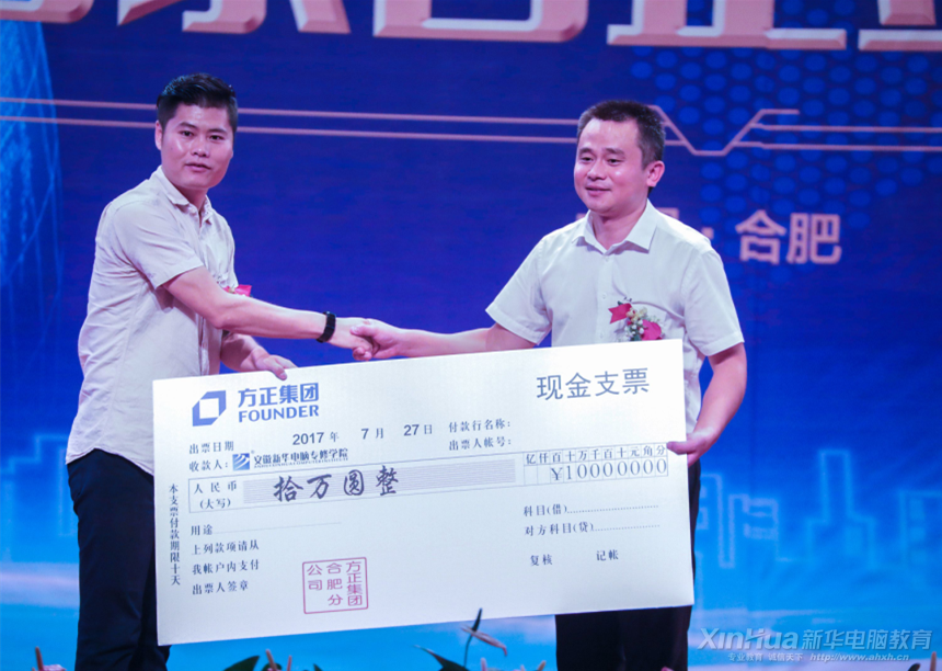 安徽新華電腦專修學院院長助理仇洋、方正寬帶網絡服務有限公司劉生龍上臺揭牌