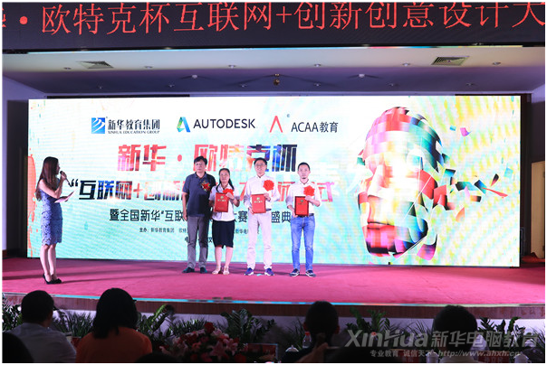 隨后,ACAA Autodesk中國教育管理中心副總經理閆晶上臺為獲獎團隊頒獎,閆晶鼓勵獲獎隊伍再接再厲,取得更好的成績,在創新設計的路上獲得更多的快樂與成就。接下來,主持人邀請石家莊新華團隊成員代表獲獎選手上臺發言,獲獎代表首先感謝了新華教育和Autodesk管理中心提供這么好的平臺,為喜愛設計的新華學子們提供了展示自己創新成果的機會。她說,時間賦予我們成長,成長回報給了時間。一萬次想法,不如一次行動。在新華,敢玩會嗨,才能活得精彩。