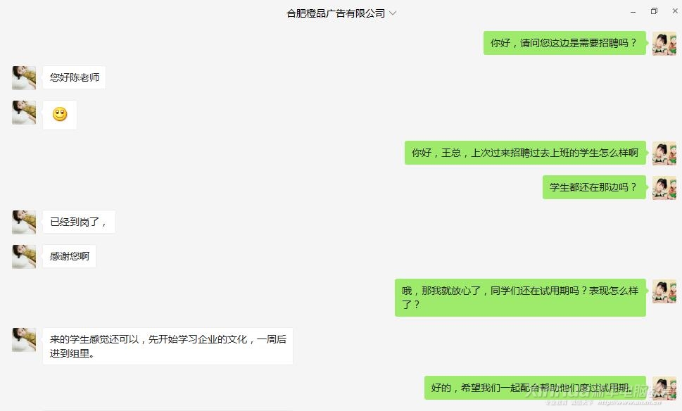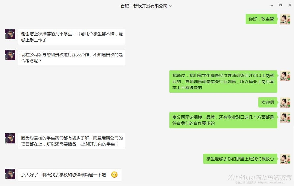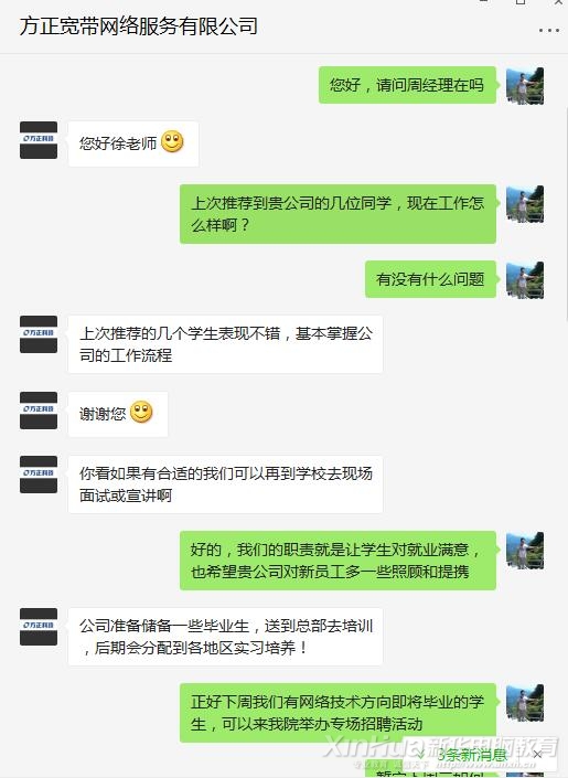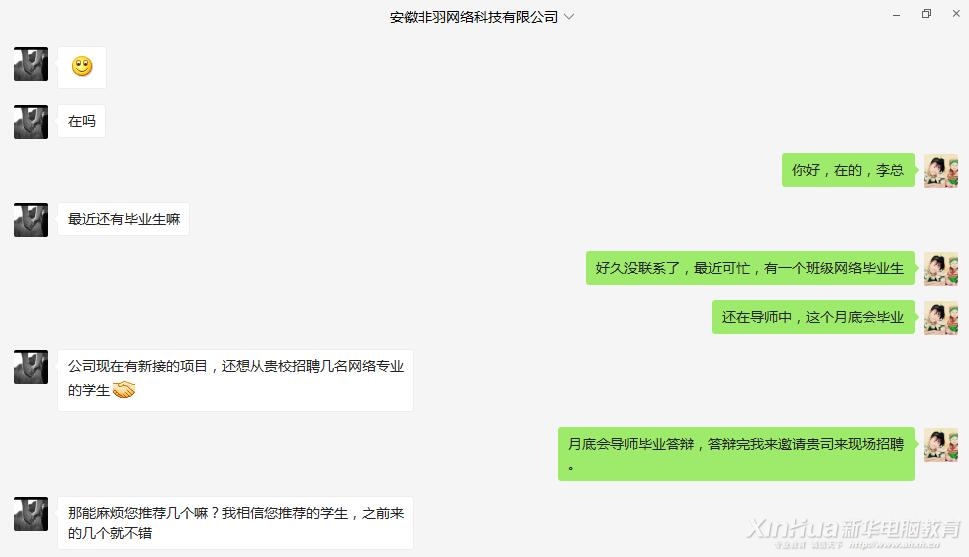 很多人會覺得畢業工作之后的自己,就成為了一個走向社會的獨立人,要獨自一個人面對一無所知的成人世界,要獨自一人頂住繁重不堪的工作壓力,要獨自一人調節無人顧及的小情緒,要獨自一人處理偶爾的不自信。可能剛從學院走出去的你也有這樣的小困擾。現在,小編想用一組聊天記錄告訴你:無論何時何地,你的背后都有安徽新華關注著你。無論何時何地,不要質疑自己的能力,因為得到企業和學院雙重認可關注的你,怎么會不優秀!