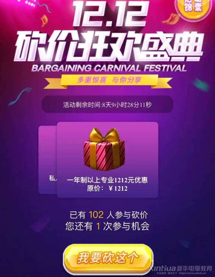 針對(duì)報(bào)名新生,即日起官網(wǎng)推出新華互聯(lián)網(wǎng)科技 “雙十二”教育文化節(jié),報(bào)名優(yōu)惠活動(dòng)。