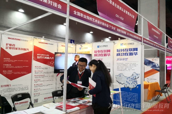 新華互聯(lián)網(wǎng)科技展臺前參觀人員絡(luò)繹不絕,師生優(yōu)秀設(shè)計作品,前沿的課程體系和完善的人才培養(yǎng)方案一經(jīng)亮相就吸引了不少參會者駐足了解。此外,義烏新華電商學(xué)院等系列校企合作模式產(chǎn)學(xué)融合的舉措受到了前來參觀院校、企業(yè)的廣泛關(guān)注。