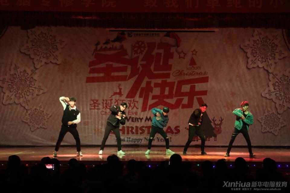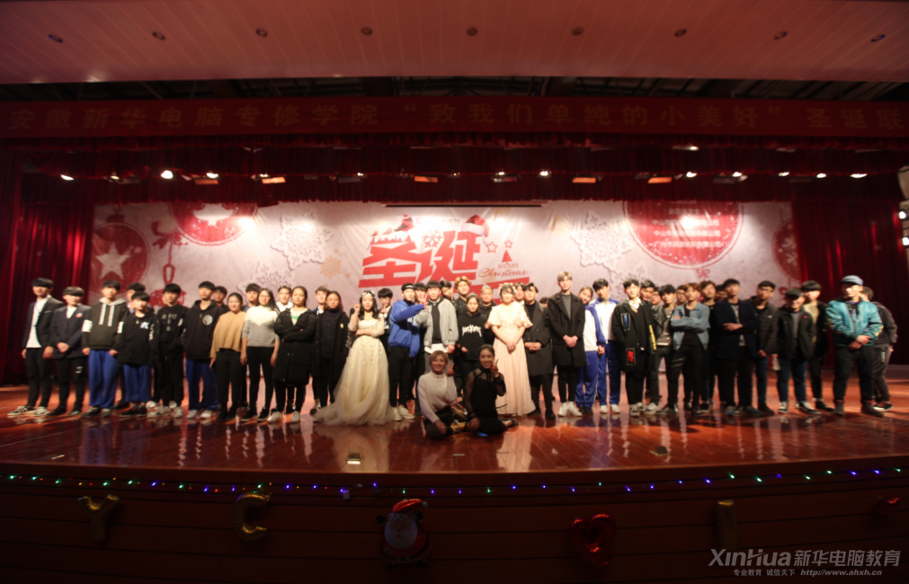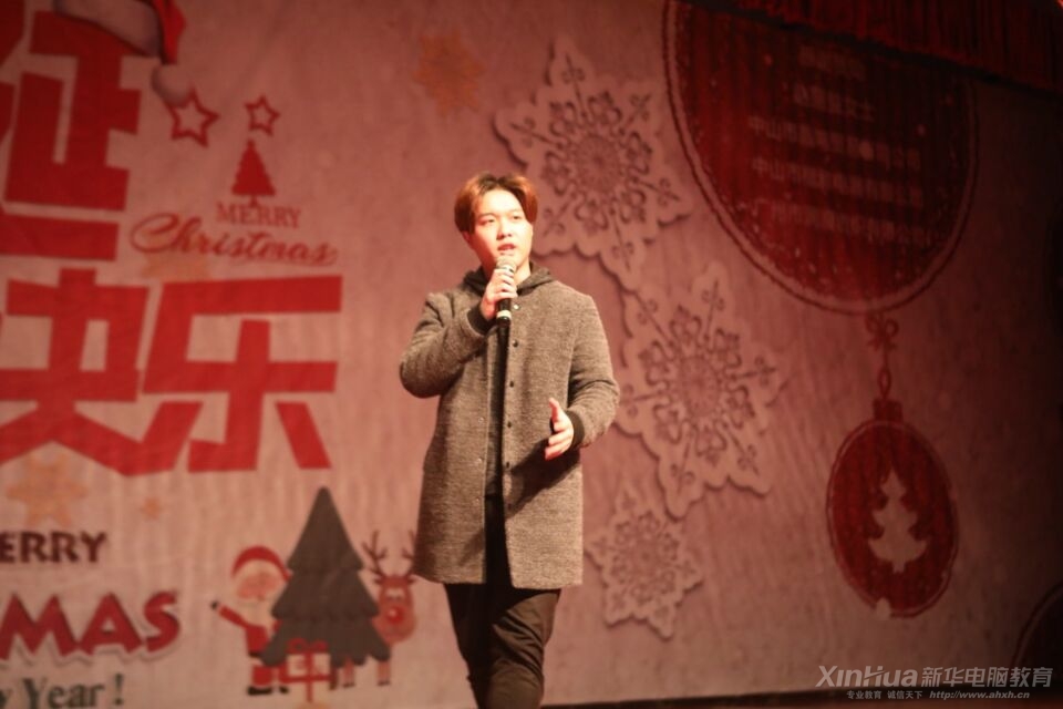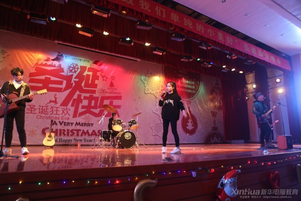 在緊張刺激的游戲環節之后,就是期待已久的壓軸節目來自安徽新華電腦專修學院同學們自發組織的樂隊,樂隊帶來的歌曲歌曲串燒也無一不將現場的氣氛渲染到了最熱,在彭文慧同學的歌聲中,晚會最后落下了帷幕。