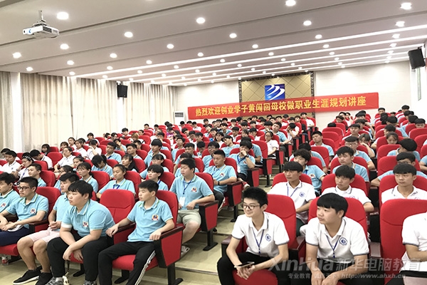 安徽新華電腦專修學院電子商務專業,現任安徽譽膚美美容咨詢有限公司總裁,兼任安徽新華創業協會會長。黃闖學長結合自身的從業經歷跟同學們分享了初入職場新人在專業技能和心理素養上應該如何準備。他從個人形象品牌、謙卑的做人態度、良好的自律習慣、持之以恒的學習精神、忠誠和感恩等方面進行了耐心的講解分析,希望同學們將來走上工作崗位時能盡快適應工作環境,在工作和個人職業生涯的發展中少走彎路。