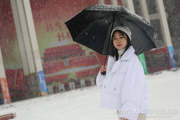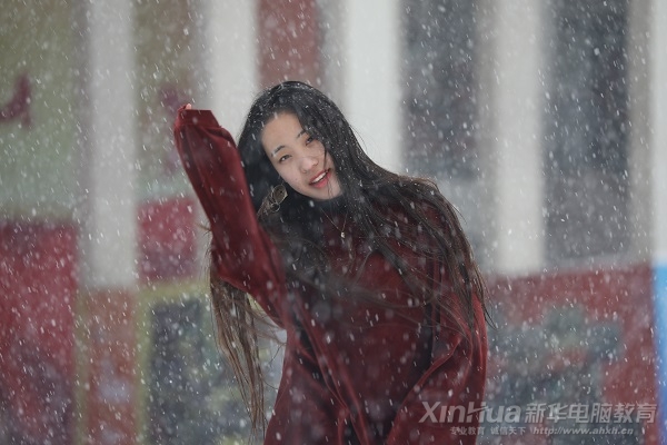 漫步在校園的淡雪中,身姿拂過那幽靜的小路,清凈而淡雅的白雪也就隨身形動,偶爾沾上幾抹,倒也與景色相襯,相得益彰。