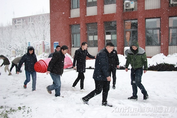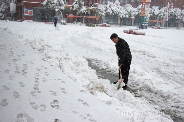 看著這些老師們個個拿起工具賣力的清掃,仿佛這厚厚的積雪都被這個氛圍融化了。