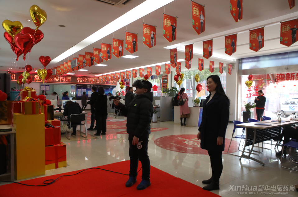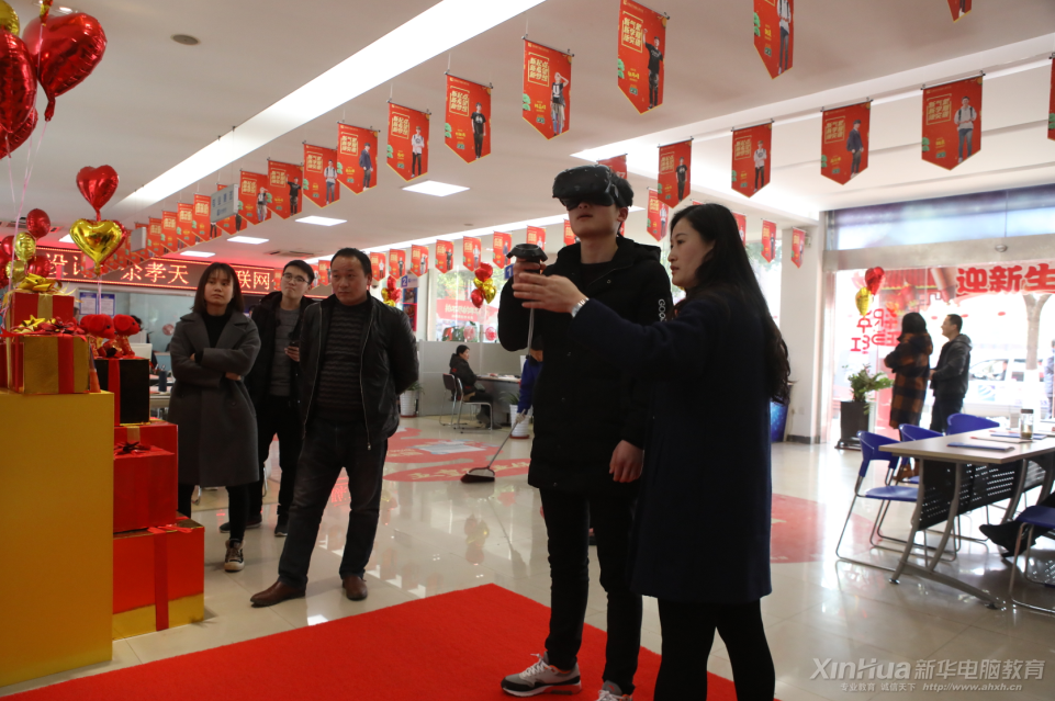 資本的浮動和巨頭們的動作,紛紛為VR輸出新的硬件和內(nèi)容,安徽新華自然不會落后,開設(shè)VR+動漫游戲高級設(shè)計師等專業(yè)課程以及各類VR體驗課,并在新年伊始貼心地將VR設(shè)備搬到了報名中心,讓前來參觀報到的學(xué)子們接觸到VR技術(shù),過一把虛擬現(xiàn)實的癮。