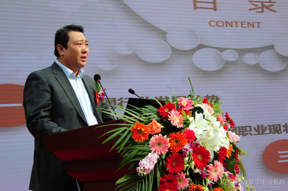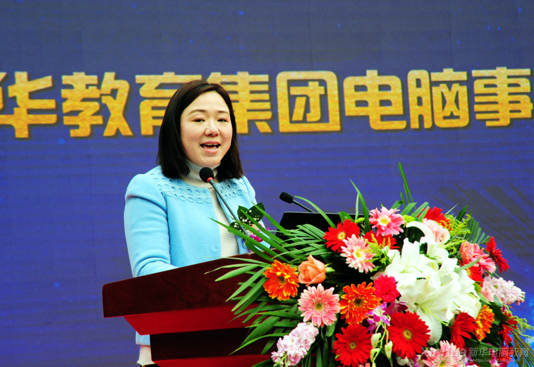 新華教育集團電腦事業(yè)部副總經(jīng)理徐虹發(fā)表講話