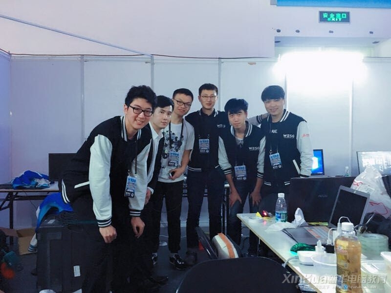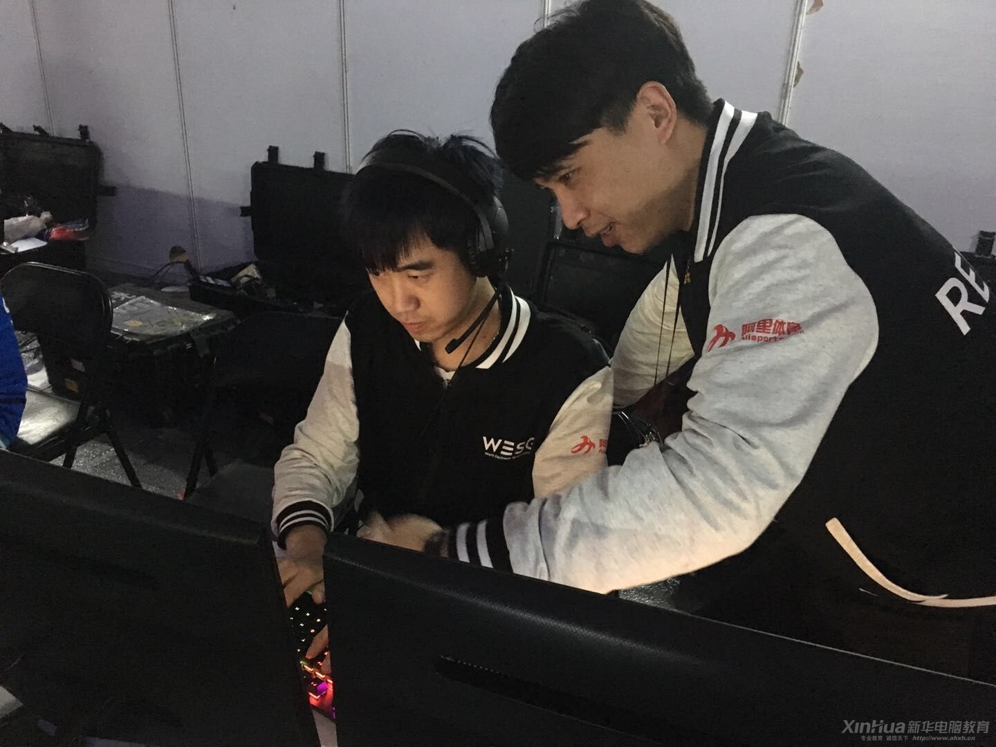 但是你知道嗎?這場世界級電競總決賽,裁判是安徽新華的老師和學生!在本屆WESG全球總決賽里,安徽新華電腦專修學院電競專業老師高楊、魯子毅以及電競專業余文超同學與來自北京大學的姜驍、復旦大學的劉欣慰同學組成團隊,一起擔任總決賽項目的裁判、導播等工作。這也是安徽新華的師生們第二次擔起這項重任!據悉,決賽現場前中國著名CS職業選手,現imbatv金牌解說xixi老師來到后臺參觀小組工作,給大家的工作提出非常中肯的意見和鼓勵。