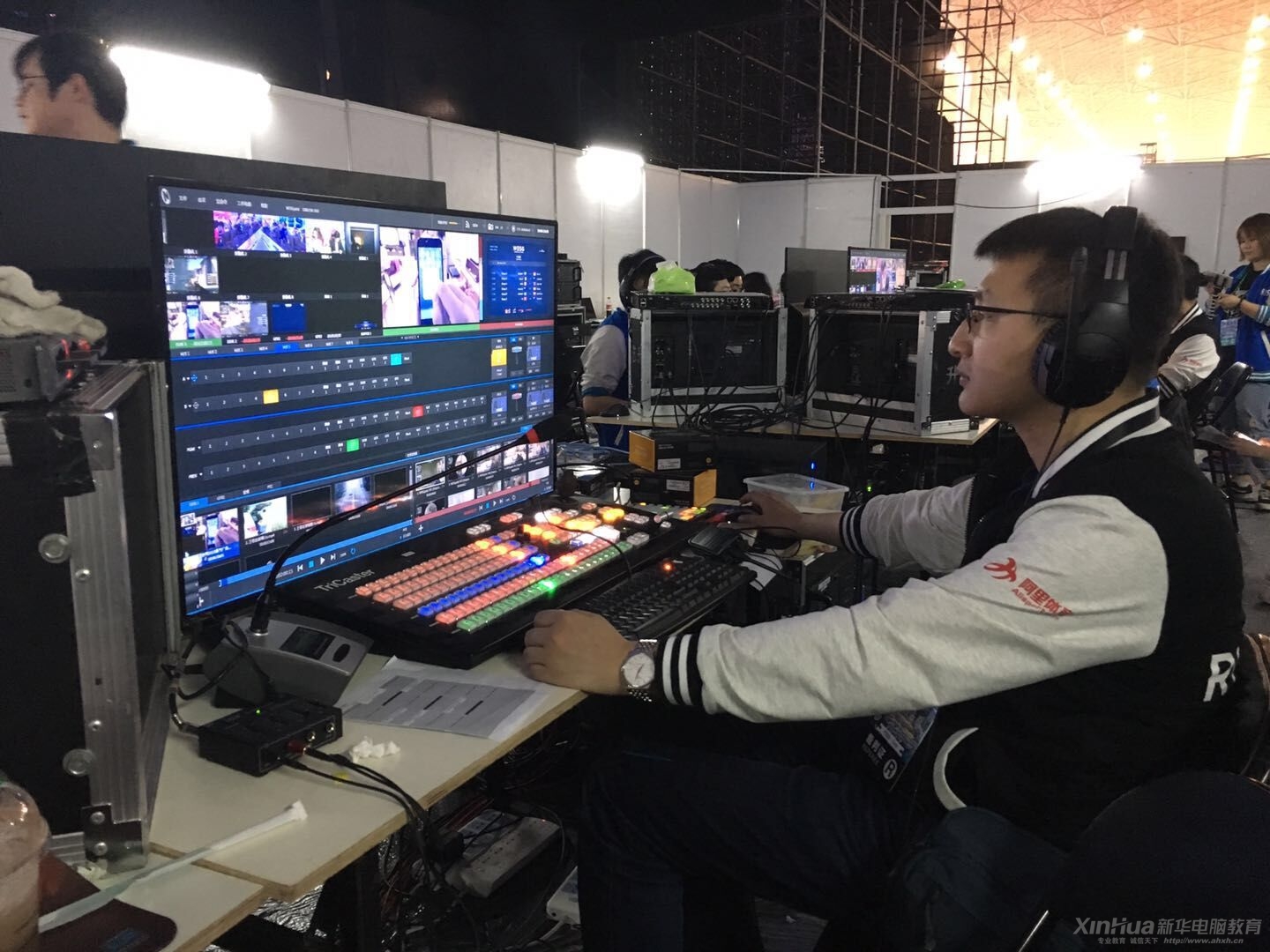 新華電競冠軍導師魯子毅 正在操作WESG總決賽舞臺導播機器