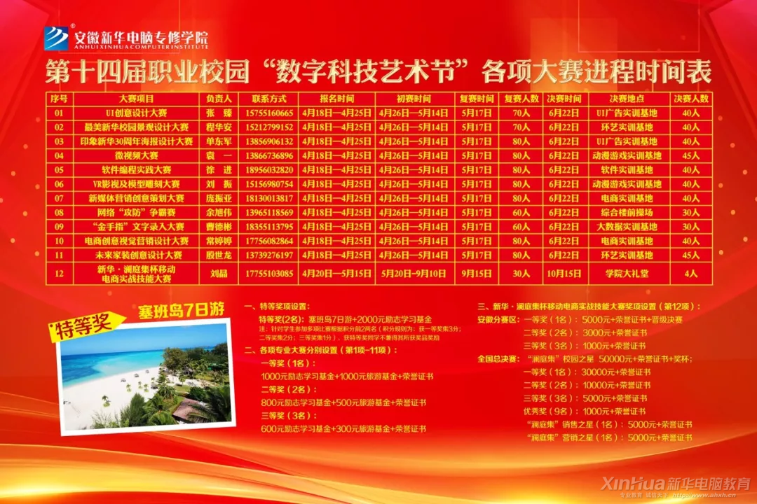 今年的數字科技藝術節除了特等獎的塞班島七日游之外,其他獎項也有相應的旅游基金。