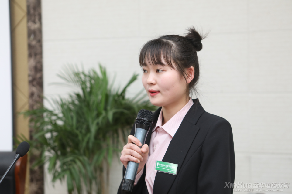 之后,實訓班學員代表張瑩瑩、企業方代表安徽睿町科技有限公司彭總、學生處李兵主任分別上臺做發言和講話。彭總和李兵主任的講話語重心長、鼓舞人心、催人奮進,無不體現了學院領導和企業領導們共同的殷切期望,也給接下來的畢業實訓指明了方向。