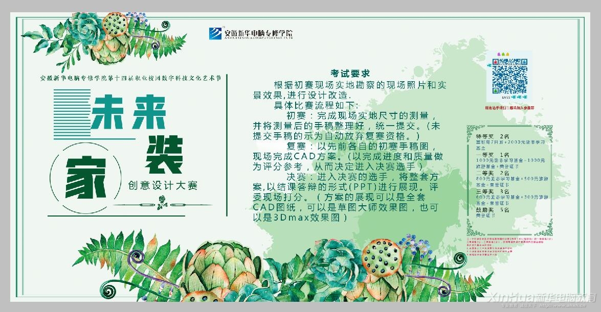 目前火熱進行的第十四屆數字科技文化藝術節——“未來家裝創意設計大賽”正在進行中,現將比賽相關注意事項通知如下: