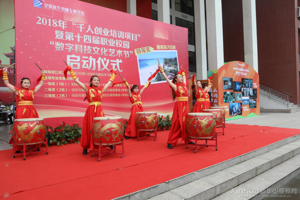 安徽新華電腦專修學院一直在確保高品質專業教學的同時,大力施行素質教育,以課堂教學為主陣地,以課外活動為舞臺,這種寓教于樂的教育模式,取得了良好效果。在此我們衷心的祝愿親愛的同學們在本屆文化節中都能一展風采,取得好的成績,獲得豐富的經驗!預祝千人創業項目成功開展,幫助更多的同學順利創業。
