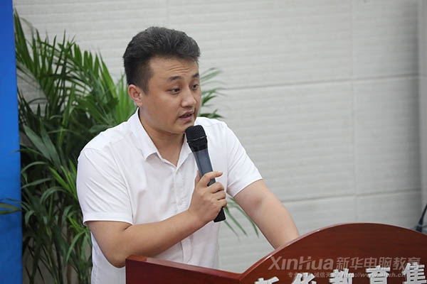 儀式開始后,安徽新華電腦專修學院院長助理胡德俊表示:校企合作定向班是學院開展校企合作學習的一種形式,也是學院在教學模式上的一種創新。希望同學們在實訓期間在提升技能的同時,更要學習如何做人,本著‘高標準,嚴要求’的原則,把握機會,認真學習,掌握各個企業所需的各項技能,成為“一專多能”的應用型人才。
