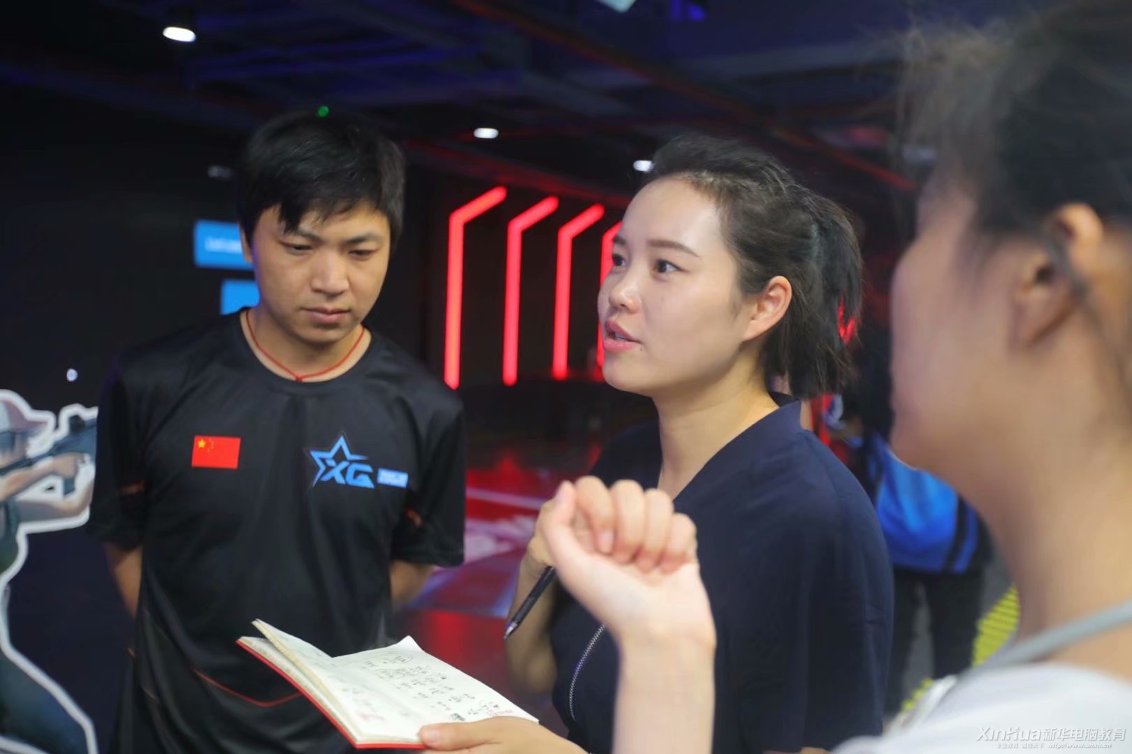 幾分鐘過后第一輪的選拔已經開始,看得到老師選手們臉上充滿笑容,第一輪的選拔中脫穎而出的是我們高老師帶隊的安徽新華隊員,經過第一輪采訪,隊員們的感覺大多都覺得很刺激,興奮,很有代入感。可能是由于設備沒有調試完美,有的隊員,選手們吐槽有一點延遲,但絲毫不影響游戲體驗。