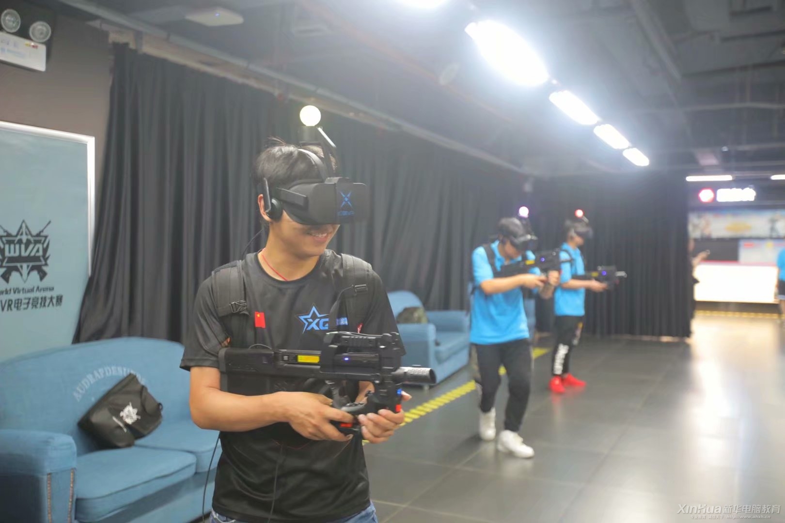 蓄勢待發的安徽新華隊員們,已經迫不及待的想要開始!在老師與技術人員的安排下,第一輪上場的隊員們,正在穿戴VR設備。緊張,刺激,充滿未知,是我們現在的心情,但是更多的是那顆想要取得勝利的心!
