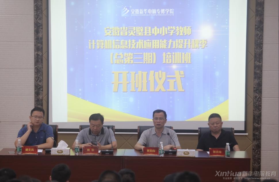 安徽新華電腦專修學(xué)院院長(zhǎng)束凱鈞、安徽省靈璧縣教育體育局電教中心主任張永持等領(lǐng)導(dǎo)出席了本次開班儀式。
