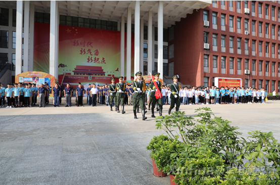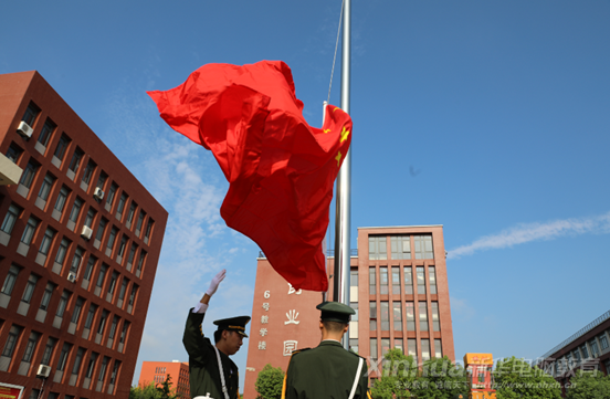 2018年9月3日星期一,全體師生集結(jié)到位,立于升旗桿下,莊嚴(yán)肅穆、緊張有序等待升旗儀式的開始。升旗儀仗隊(duì)鏗鏘有力的走來,隨著國歌的響起,五星紅旗飄揚(yáng)緩緩升入頂端,飄揚(yáng)在空中,民族自豪之情在心中涌動(dòng)。