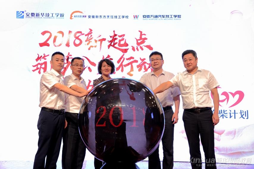 安徽新華電腦專修學院禮堂流光溢彩、熠熠生輝,在這里隆重舉行了拾柴計劃·“2018新起點,筑夢公益行動”啟動儀式。安徽省人社廳職業能力鑒定處劉曉燕處長、新華教育集團副總裁沙旭、安徽新華技工學校校長束凱鈞等領導參與了本次啟動儀式。