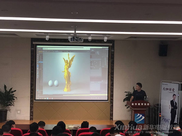2018年10月9日,安徽新華電腦學院VR動漫游戲專業邀請到安徽合肥卡其數字科技有限公司技術總監刑正科專家講師,為同學們講述真實電影特效里的三維材質布光都是怎么做的。