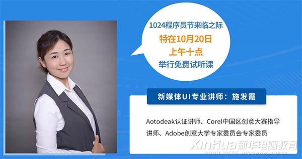 為慶祝1024程序員日,2018年10月20日上午10點,安徽新華電腦專修學院周末充電班舉行免費試聽課!Aotodeak認證講師、Corel中國區(qū)創(chuàng)意大賽指導(dǎo)講師、Adobe創(chuàng)意大學專家委員會專家委員、新媒體UI專業(yè)講師施發(fā)霞親授免費試聽課,等你來學哦~