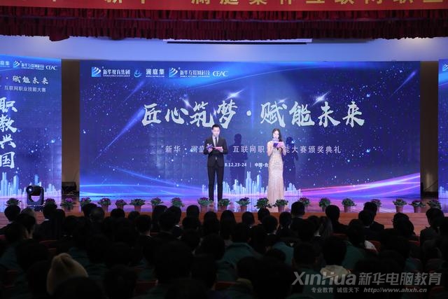 慷慨激昂的致辭后,萬眾矚目的頒獎環節盛大開啟。首先,CEAC信息化教育與培訓辦公室主任曹洪潑上臺宣讀“新華•瀾庭集杯”互聯網職業技能大賽獲獎文件。