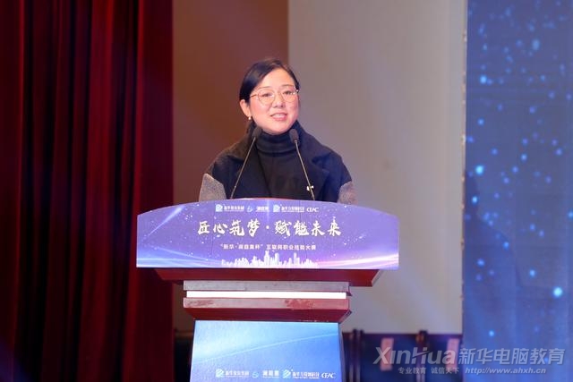 新華教育集團電腦事業部副總經理徐虹上臺致辭并拉開盛典的帷幕。徐總在致辭中表示:此次舉辦“新華•瀾庭集杯”互聯網職業技能大賽目的,共有以下幾點。第一:在實踐中檢驗教學成果,全面提升學子綜合素養,讓每一位新華學子能“階段學習、階段總結、階段提升”;第二:促進教學教改,全面更新教學案例,讓教學更貼近市場;第三:全面推進校企融合共建,讓新華培養的每一位學子都能成功就業更能成就事業!