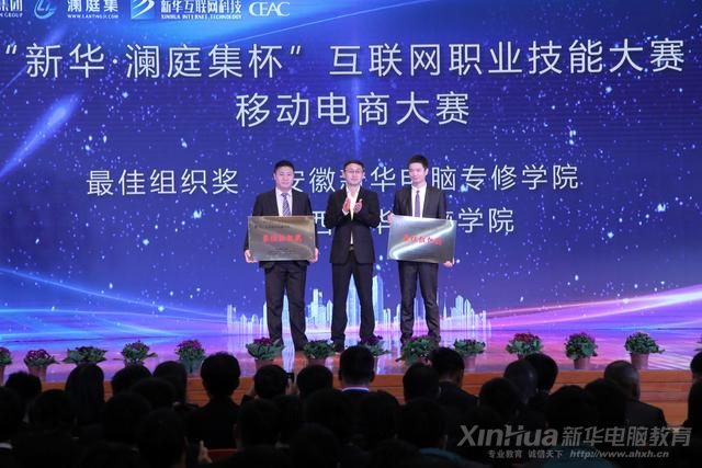 隨后,安徽省電子商務協會秘書長張毅、瀾庭集(浙江)貿易有限公司大區總裁溫峰、瀾庭集(浙江)貿易有限公司總裁助理張軍建等在場嘉賓依次上臺,分別為移動電商大賽一、二、三等獎、銷售之星、營銷之星、優秀團隊獎、優秀指導教師獎、校園之星等移動電商大賽獎項頒獎。