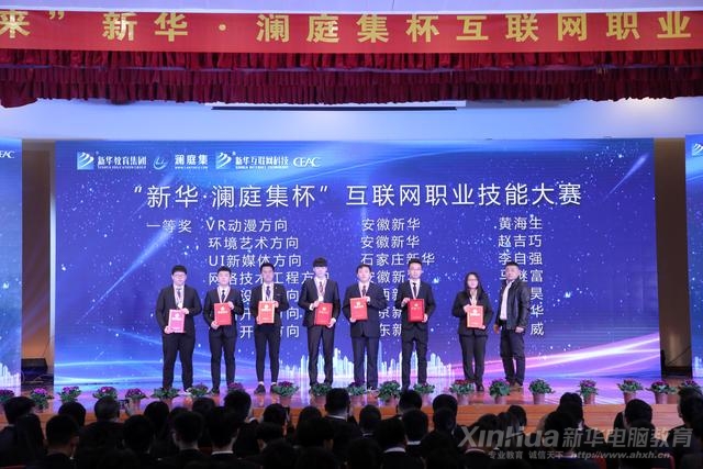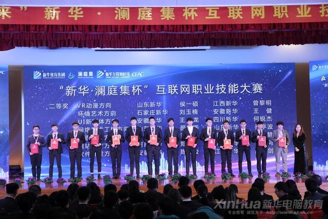 “新華 • 瀾庭集杯”互聯網職業技能大賽涵蓋UI界面設計、VR動漫游戲模型設計、平面廣告、軟件開發設計、室內效果圖設計、網絡技術應用、網站設計與開發等七大方向專業比賽,以市場為導向、以真實項目案例為比賽內容、特邀企業總監蒞臨考評,來自全國23所院校的近百名互聯網精英人才同臺競技,經過1天的激烈比賽,冠軍已脫穎而出,本次頒獎盛典即見證榮耀時刻。