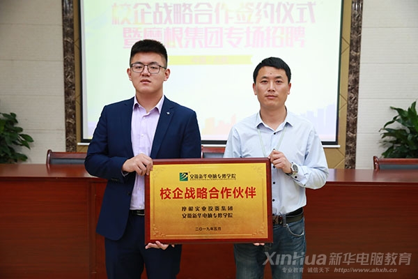 5月10日安徽新華電腦專修學院舉辦了”校企合作戰略簽約儀式“與跨國集團摩根實業有限公司簽訂校企合作協議。