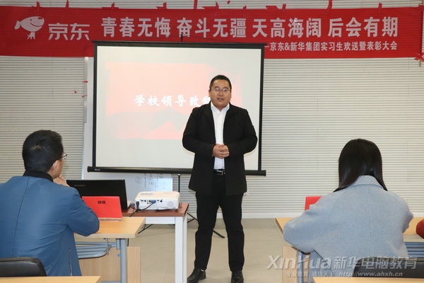 在歡送暨表彰大會上,京東物流集團安徽區人力資源部負責人徐靖對安徽新華電腦專修學院實習同學的表現非常認可,并夸贊道:安徽新華電腦專修學院的同學們的實習表現非常優異,他們注重請教交流,在平時的工作中善于觀察,經常和其他同學或者崗位老師溝通專業知識、請教專業問題,他們努力提升自己的業務能力;他們主動學習,擺正自己的姿態,虛心向企業的老同志學習,遇到問題主動積極的思考,在實踐中不斷學習,填補自己操作能力的空缺;他們有良好的心態,因為缺乏經驗,會有遇到挫折和失敗,在面對問題時,他們沒有消極,而是學會總結和自我調節,積極主動地去工作,這十分難得。